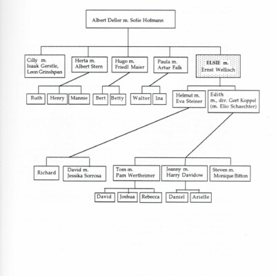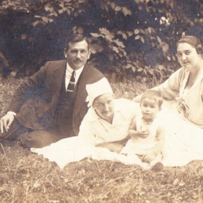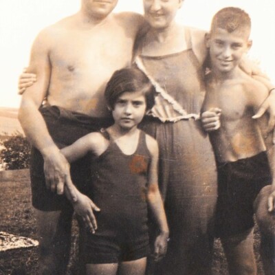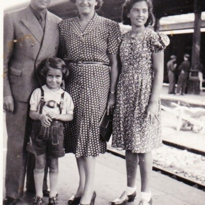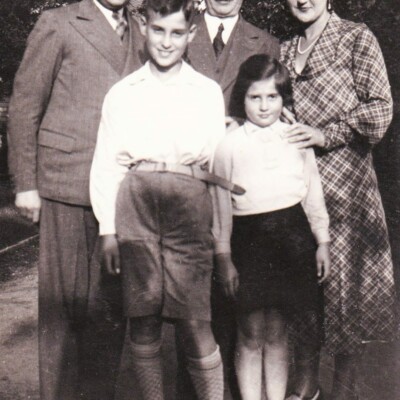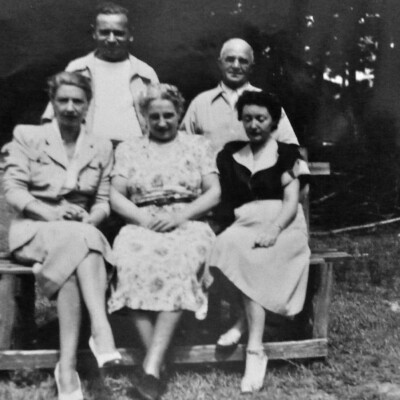 From left: Edith Koppel (nee Wellisch), Ilse Grunewald (nee Koppel), Gert Koppel (back to camera), Gerda Sifnaghel (nee Gumpel), and Gustav ("Gushi") Gumpel