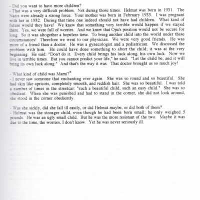 Peggy has very vivid memories of our great-grandmother, Amalie Koppel (nee Heilbuth). She was moved to tears as she recalled her memories of Oma Malchen, as we called her.