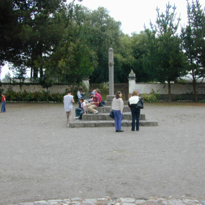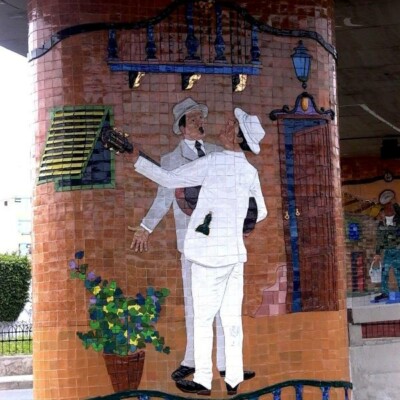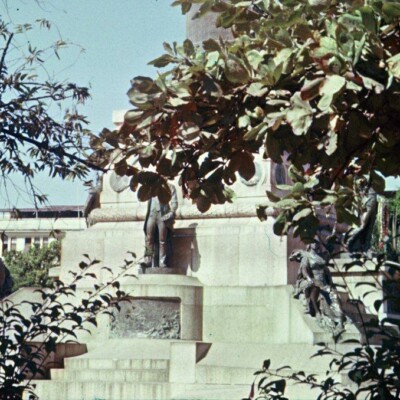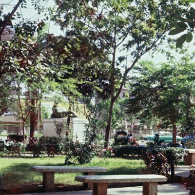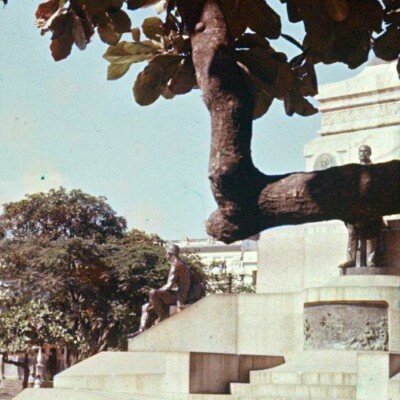 From Cati Holland (Nee Cohn): This photograph was taken with the back to the "two men shaking hands". To the right you can see the premises of the Centro Israelita, the lower building. Next to it was a bank that doesn't exist now. [Katja Lindenberg (nee Sifnaghel) subsequently added: Too small to see on my blackberry, but the description exactly fits the statue of Bolivar and San Martin at the Malecon. The statue is still there, as is the building of the old Centro Israelita (at least as of last May, 2009)]. [ Fred Grunewald added: And there was an animal statue that we dubbed El Burrochancho]