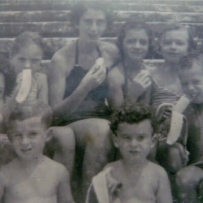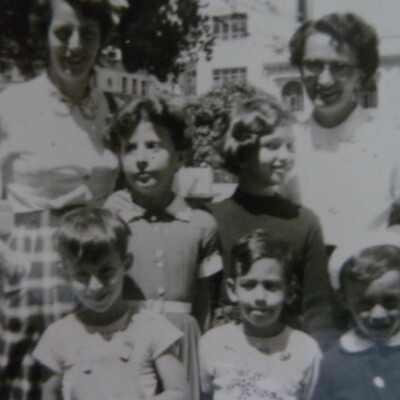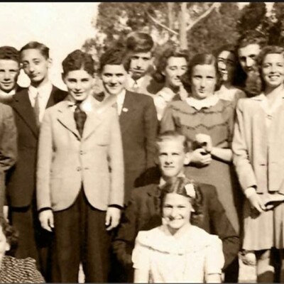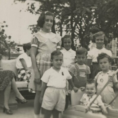 From left to right: Renate Herz, me (Cati), Yosef Prosnitz, Lothar Herz???, Herr Gutman, ?? Kohn, ????, Nicole Sussman, and Elizabeth (Chichi) Nussbaum. Miriam Grunauer is sitting in the floor -- ca. 1948, Guayaquil
