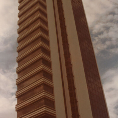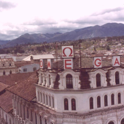 Israeli flag waving on the front of the Club Centro Israelita, Guayaquil, 9 de Octubre 106 (undated) -- photo taken by Miriam Alexander.