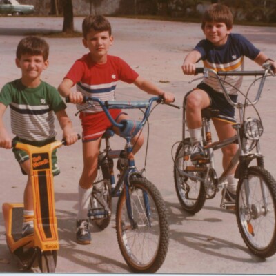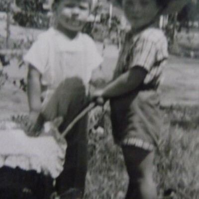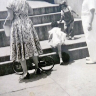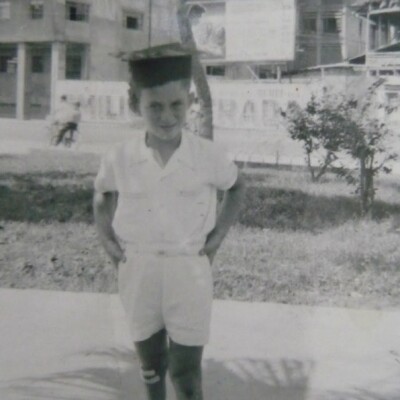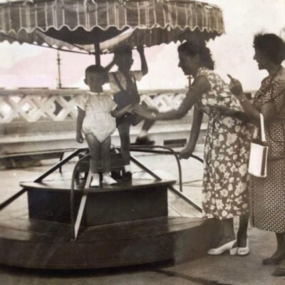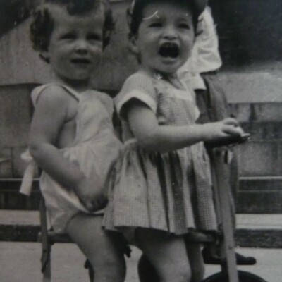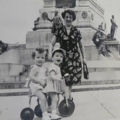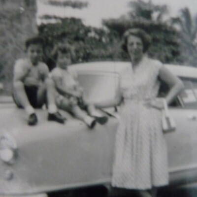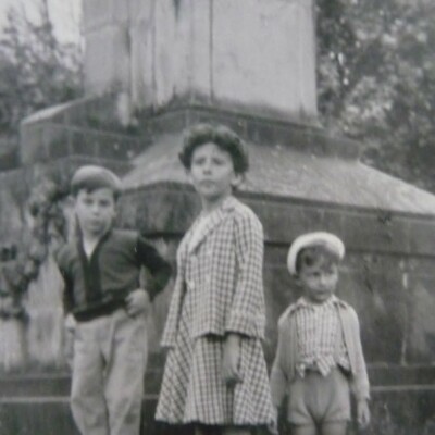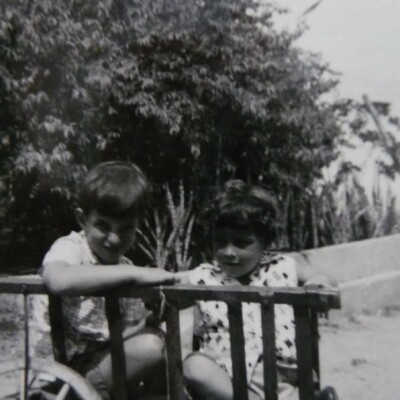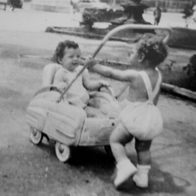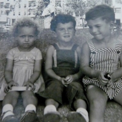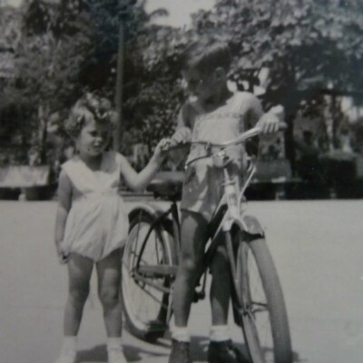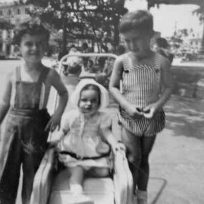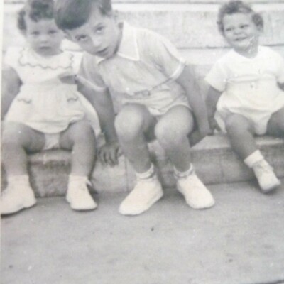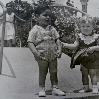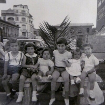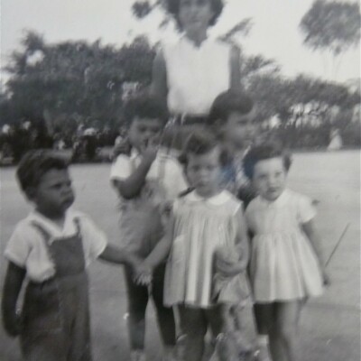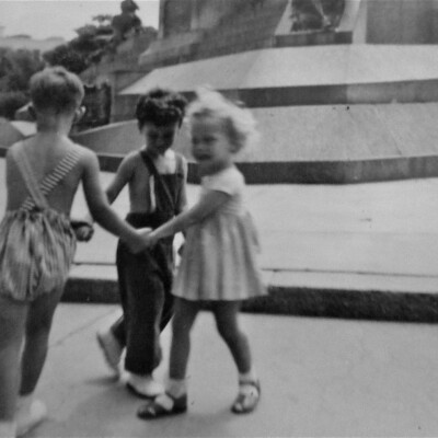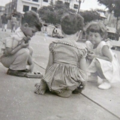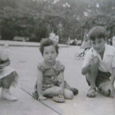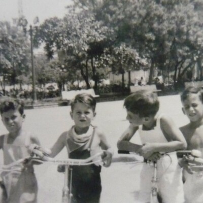 Foto en el Parque Centenario de Guayaquil, ca. 1954, el mas pequeno en el triciclo es Saul Suster. No estoy seguro, pero pienso que la niña el el medio es mi prima, Tania Suster (z"l), y el chico de la patinenta es Niko Sifnaghel.
