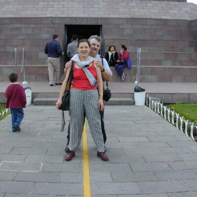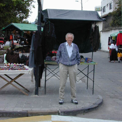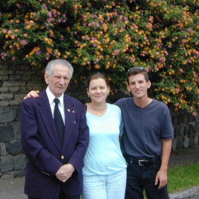 My grandfather, Elkuno Rosenheck, at the dedication in Quito of a monument to the victims of the Holocaust. Don't know who the girl is. My grandfather and his wife, Miriam, also ran the first Kosher restaurant in Quito.