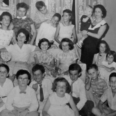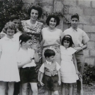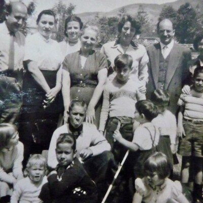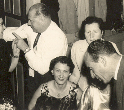 From left: Manea Sifnaghel, Magda ("Moschi") Koppel (nee Partos), John ("Aki") Koppel, Katja Sifnaghel, Elisabeth ("Lieschen") Gumpel (nee Partos), Gerda Sifnaghel (nee Gumpel), Gustav ("Gushi") Gumpel, Edith Koppel (nee Wellisch), Gert Koppel, Ilse Grunewald (nee Koppel), and Heinz Grunewald. Fellmann Bar Mitzvah -- 1957, Guayaquil