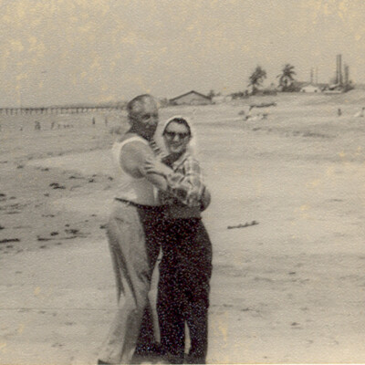 Ilse Grunewald (nee Koppel) Collection: Playas -- February 1948, with her husband, Heinz Grunewald and her parents, John and Magda (nee Partos) Koppel.