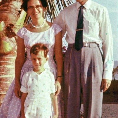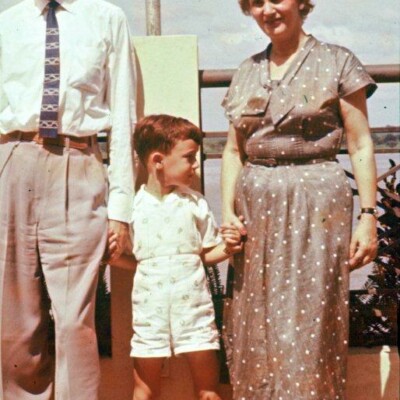 Ilse Grunewald (nee Koppel) holding son, Ralph, and Heinz Grunewald, with daughter, Peggy -- 1956, Guayaquil