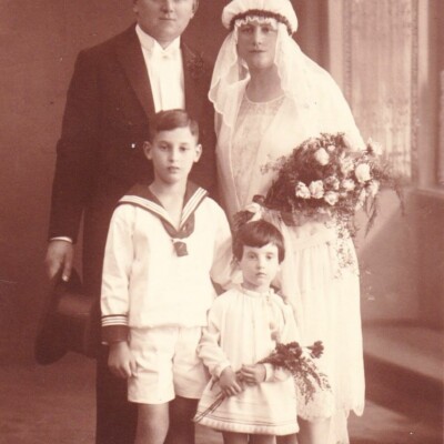 Our small family: my parents Siegbert and Else Cohn in the back; my paternal grandmother Recha Cohn (sitting), and my sister, Gerda Eveline, and me, Catalina (Cati), on each side.