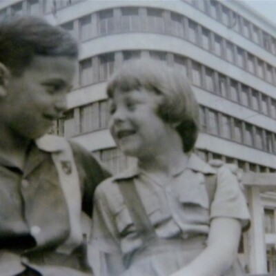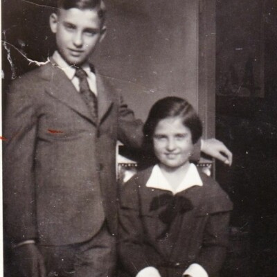 “Antwerpen, 1940” L: Nora Meyer-Uderwald [Back of photo: “Brussels 1942”] R: Hans Meyer-Uderwald [Note: Nora’s brother]-- page 42