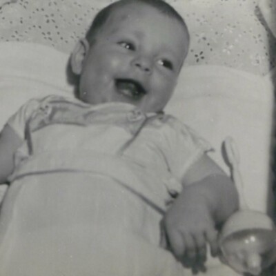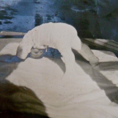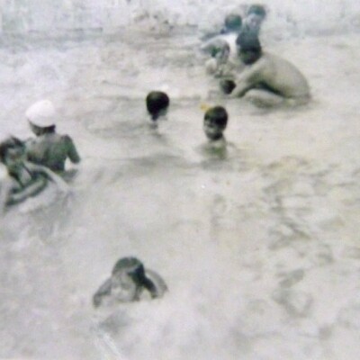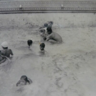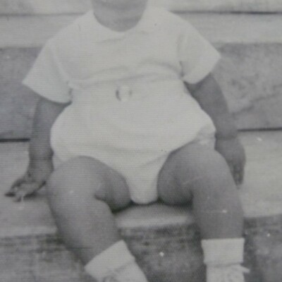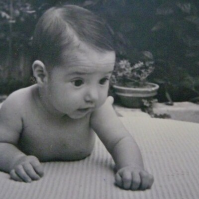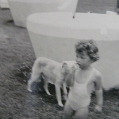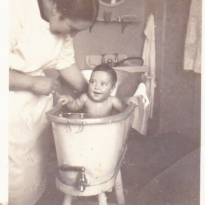 Gabriel Alexander being washed in the bathtub by my mother, Miriam, while Fred Grunewald is watching. My father, Alex, took the photo -- 1952, Guayaquil