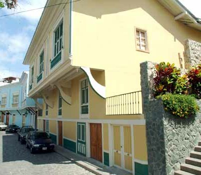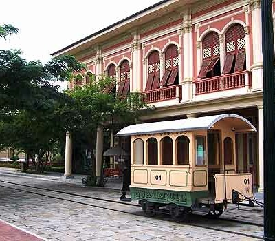 The building where the old "El Club" -- the Guayaquil Jewish community building -- was located happens to be a historic building, located at one time where Nueve de Octubre meets the Malecon (and now the site of the Bankers Club building). In its earlier years, the buidling housed the American Consulate. When the Jewish community occupied it (from the mid-1940s until the late 1950s), it was already fairly run-down. The community rented-out the portions facing the Malecon and the Guayas River in order to bring in needed revenue. In time, the buidling was movede to itsd current locstion, in the Parque Historico. Many of the JOEs on our trip remember this building very fondly -- as well as all the events that took place here: religious services, game nights, theater, Jewish holiday celebrations, birthday parties, etc. It's wonderful that the building has been renovated and preserved.