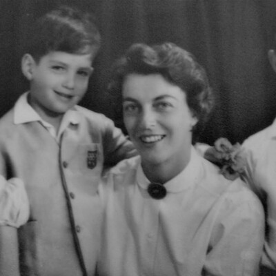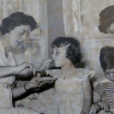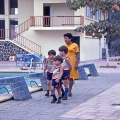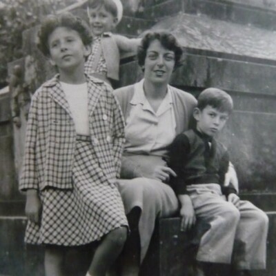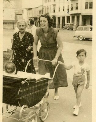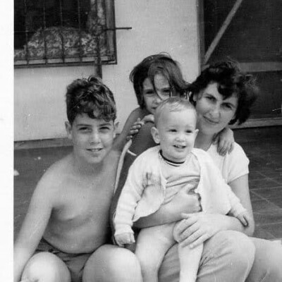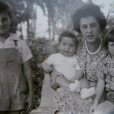 Elisabeth (Lieschen) Gumpel (nee Partos) with three of her grandchildren. From left: Niko Sifnaghel, Jerry Gumpel & Lynn Gumpel -- 1964, Guayaquil