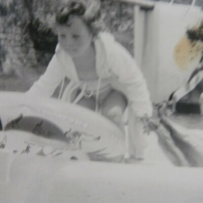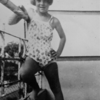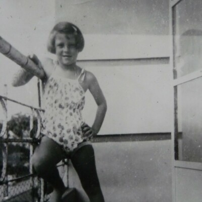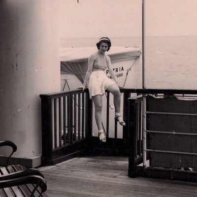 Gerda Gumpel on the deck of the ship "Patria," on her family's journey to Ecuador from Hamburg, Germany -- 1930, somewhere on the Atlantic Ocean