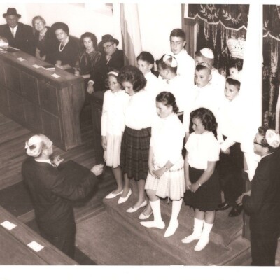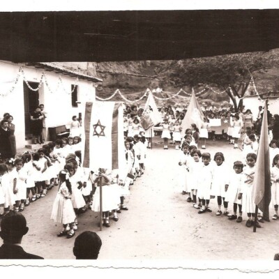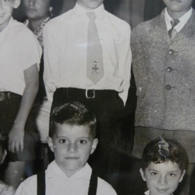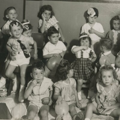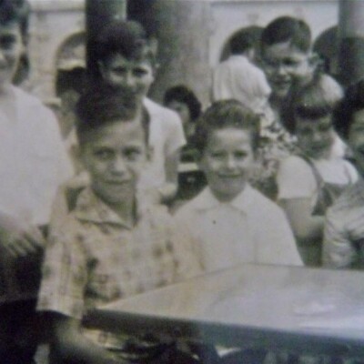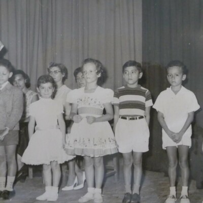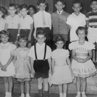 ![Attached are a few photos from "Mrs. Lenky's Kindergarten." If I'm not too much mistaken, the kindergarten teacher's real name was Lempke. However, we kids couldn't pronounce this name, so she was Mrs. "Lenky." This is the graduation ceremony from Mrs. Lenky's kindergarten class, in January 1957. In the front, bowing, is Niko Sifnagjel. In the middle in the back, am I. [In far back, at the left, is Lieschen Gumpel (nee Partos) -- RG]](https://jewsofecuador.com/wp-content/uploads/cache/2024/10/lenky041/3471640192.jpg)