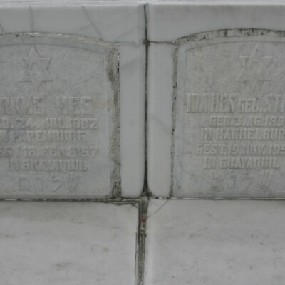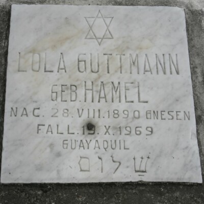 Amalie (Oma Malchen) Koppel (nee Heilbuth): April 5, 1871 (Hamburg) - November 28, 1959 (Guayaquil) This is the grave of my grandfather's mother, Amalie Koppel (nee Heilbuth). She survived the Holocaust by living in the open in Brussels (she had Aryan features), but she lost 4 of her 6 children in the Nazi killing centers, as well as many of her grandchildren. I have faint memories of her, since she died when I was 3 years old, in Guayaquil. My older siblings remember her well and fondly. The grave of her husband, Max Koppel, is in Hamburg. He died before the Holocaust; I have visited his grave, too.