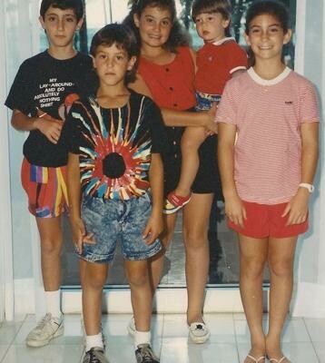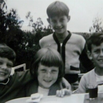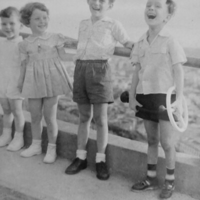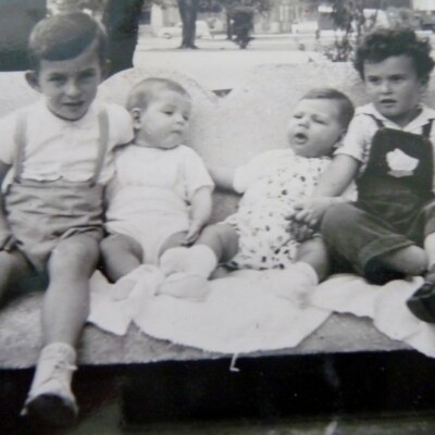 Cousins (top from L - R): Peggy Grunewald & Fred Grunewald (bottom from L - R): Ralph Grunewald, Jeanny Koppel & Tom Koppel -- September 1959, Guayaquil