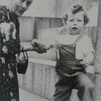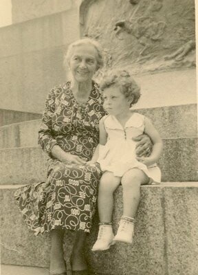 “Brussel, 1947” L: Willy Stoppelman (Gerhard’s father) R: Amalie Heilbut Koppel/Oma Malchen [Back of photo: “Uccle (Brussels), 1942” (where Oma Malchen was hiding) -- page 47
