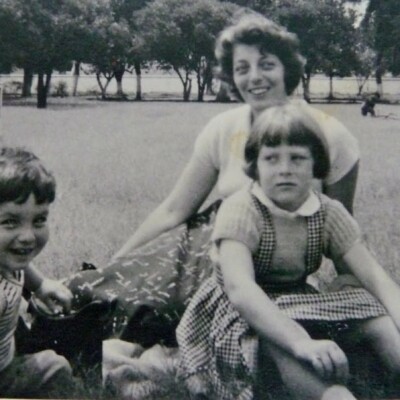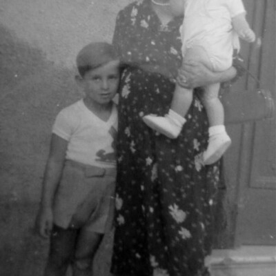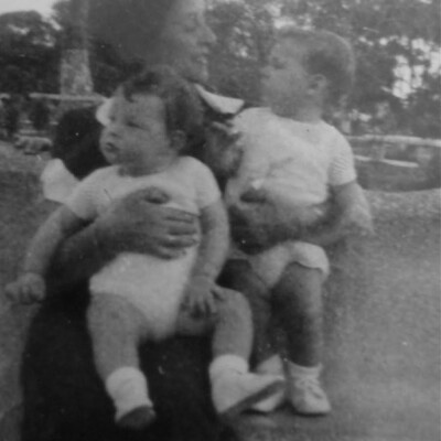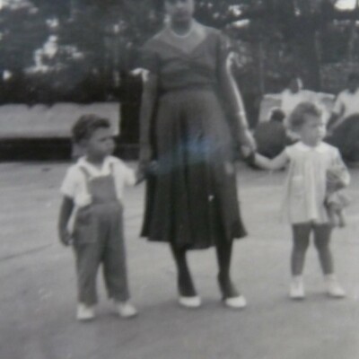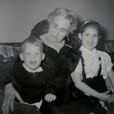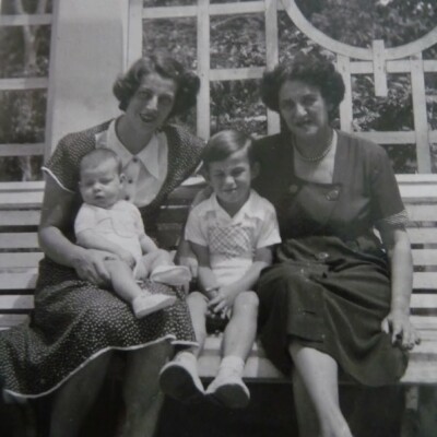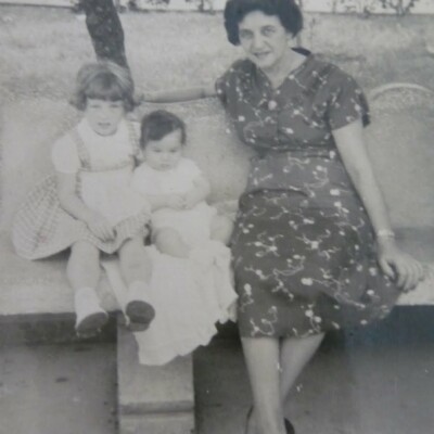 Elisabeth (Lieschen) Gumpel (nee Partos) with three of her grandchildren. From left: NIko Sifnaghel, Jerry Gumpel & Lynn Gumpel -- 1964, Guayaquil
