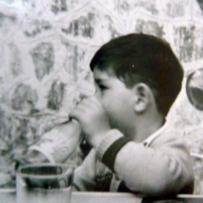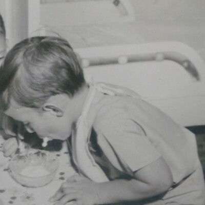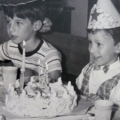 My first bithday party, July 1952, Guayaquil -- I'm sitting on the chair, in the middle Niko Sifnaghel, on his right Freddy Grunewald, in between Dina Grunauer