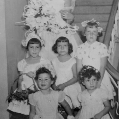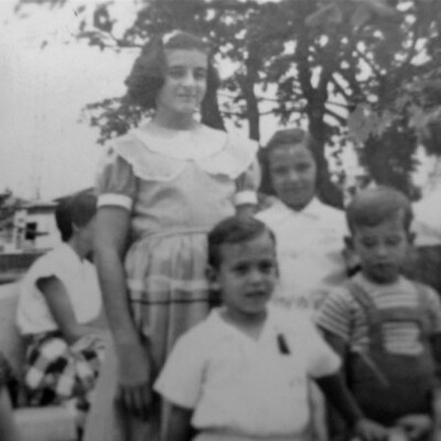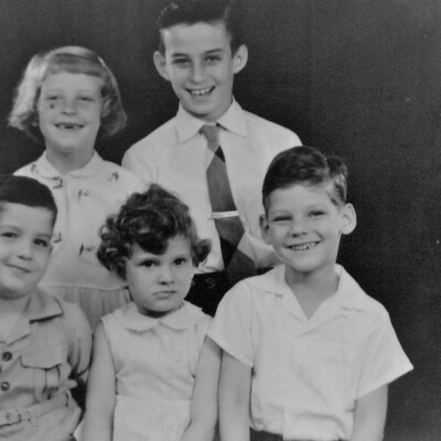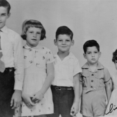 Cousins (from left): Fred Grunewald, Tom Koppel, Peggy Grunewald, Jeanny Koppel, Ralph Grunewald -- ca. 1956, Guayaquil