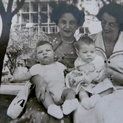 Edith Koppel (nee Wellisch) with daughter, JeannyKoppel and Ilse Grunewald (nee Koppel) with son, Ralph Grunewald -- 1956, Guayaquil