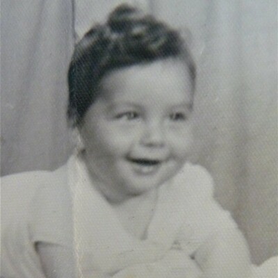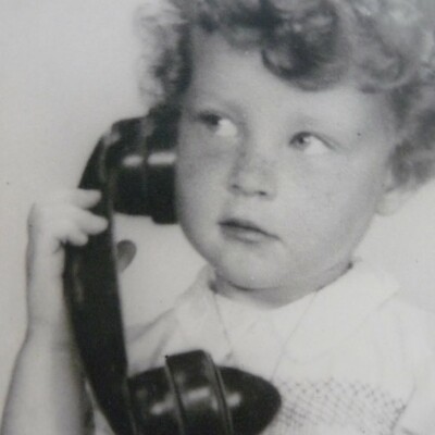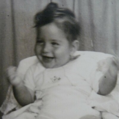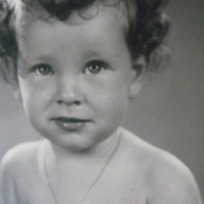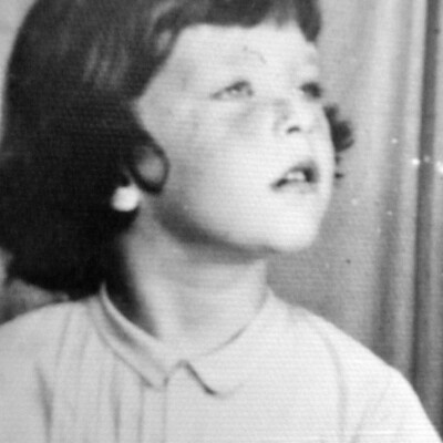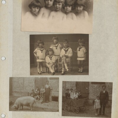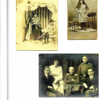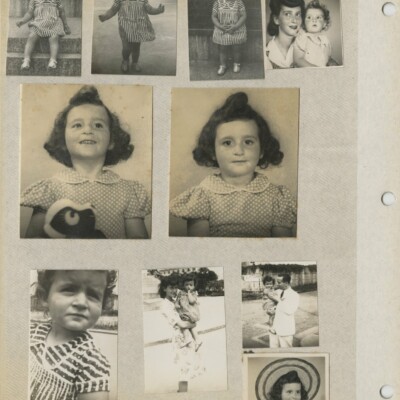My father Siegbert Cohn on the upper left. My parents, my sister and me hiding, ca. 1946. Second row: my sister Eveline, and Eveline, Oma Recha and me, Cati, in 1941.