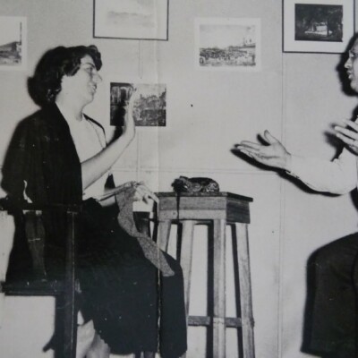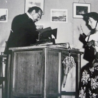 Ilse Grunewald (nee Koppel) and Heinz Grunewald perform in a skit at Centro Israelita -- undated, Guayaquil
