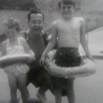 Left: Gert Koppel and children, Jeanny and Tom -- 1958, Guayaquil; Right: Tom and Jeanny Koppel -- 1958, Guayaquil