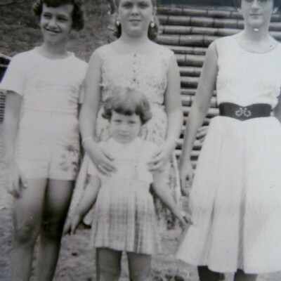 At left is Lotti Scharfstein (Elisa Lotti) and my sister, Gerda Eveline, at far right. I don't know who the man is.
