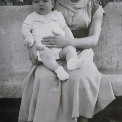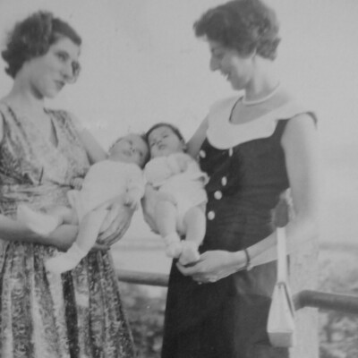 Ilse Grunewald holding her son, Fred and Gerda Sifnaghel holding her son, Niko -- ca. 1951, Guayaquil