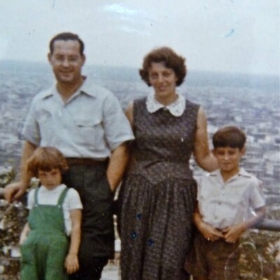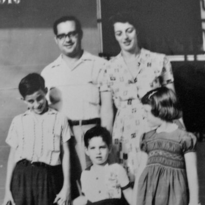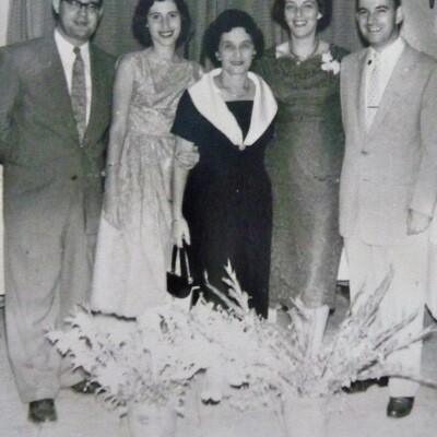 From left: Heinz Grunewald, Edith Koppel (nee Wellisch), Magda Koppel (nee Partos), Ilse Grunewald (nee Koppel), Gert Koppel at Geiger Bar Mitzvah -- Sept. 1959, Guayaquil