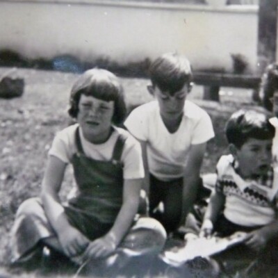 From left: NIko Sifnaghel, Peter Albers, and Gabi Alexandrer -- My 4th birthday party -- July 1955, Guayaquil