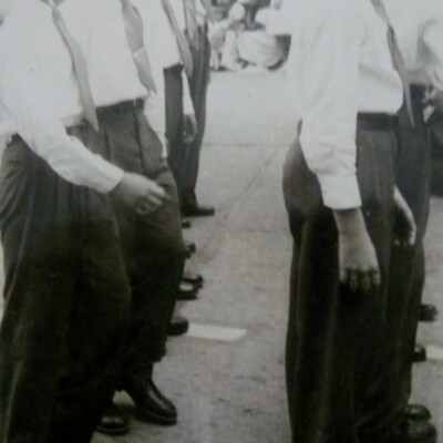 Foto del Colegio Americano de Guayaquil, 5to curso de secundaria. El primero de la fila de abajo (sentado) de la izquierda es Niko Sifnaghel; el tercero es Saul Suster. Eramos los dos unicos muchachos Judio de la clase. (undated)