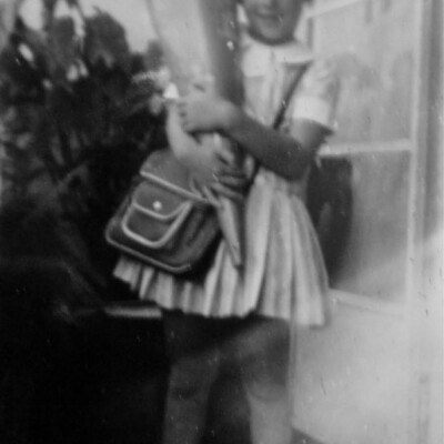 I'm sending you photos from my sister, as a girl scout, and as a student at the colegio Guayaquil. In the first one she wrote: "Excursión a Huigra de la Brigada de Guías "Las intrépidas". Huigra Diciembre 9 de 1945, 10 a.m." She is the first to the left on the second row.