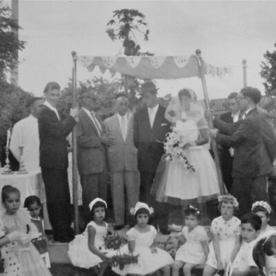 Marriage of schaliach Moshe Rubin to his wife, Rama @ the Centro Israelita Club -- July 12, 1959, Guayaquil