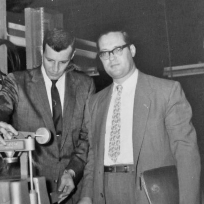 Fred Grunewald (on right) @ Escuela Americano. Frm left: Pedro Vaca; Olivia ?, Fred Grunewald -- 1961, Guayaquil