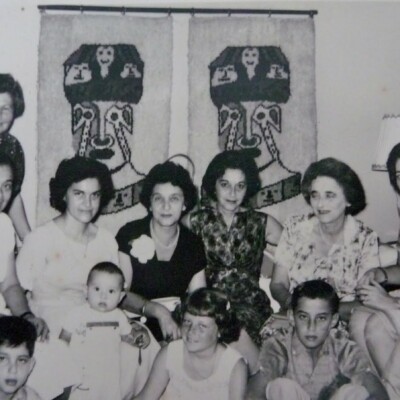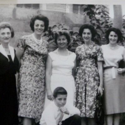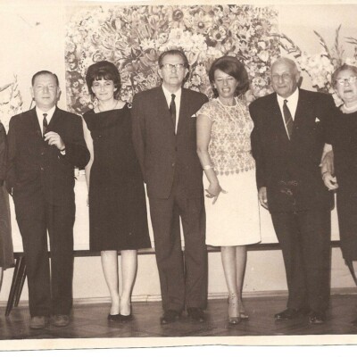 Peter Albers Bar Mitzvah party (from left: Elisabeth (Lieschen) Gumpel (nee Partos), Else Wellisch (nee Deller), ??, Magda (Moschi) Koppel (nee Partos), John Koppel, ??, ?? -- 1963, Guayaquil