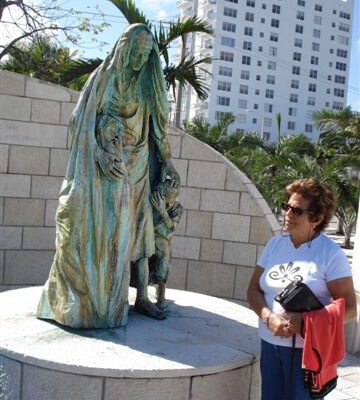 From Cati Holland (nee Cohn), Hadera, Israel: This photograph was taken with the back to the "two men shaking hands". To the right you can see the premises of the Centro Israelita, the lower building. Next to it was a bank that doesn't exist now. [Katja Lindenberg (nee Sifnaghel) subsequently added: Too small to see on my blackberry, but the description exactly fits the statue of Bolivar and San Martin at the Malecon. The statue is still there, as is the building of the old Centro Israelita (at least as of last May, 2009)]. [ Fred Grunewald (Dallas, TX) added: And there was an animal statue that we dubbed El Burrochancho]