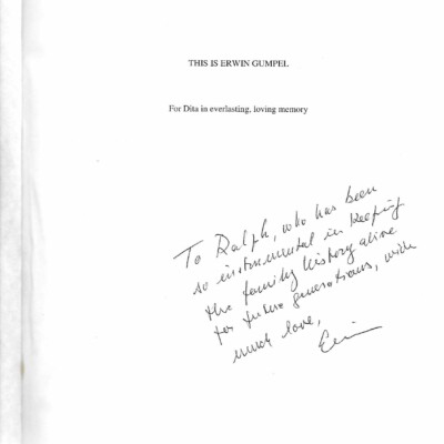 "Meiner grossen, geliebten, süssen Ilse -- in Liebe, Dein Aki -- 30.3.39"[“My big, beloved, sweet Ilse -- With love, your Aki (father) -- March 30, 1939” (Note: Same day as Oma Moschi/Opa Aki’s wife/Mami’s mother’s birthday)]"Mein Goldi, in inniger Liebe, küsst Dich -- Dein ‘Mütterl"[“My little Golden One, with deep-felt Love, kisses --- your “’Mütterl’” (pet name meaning “your little mother”)]-- page 1