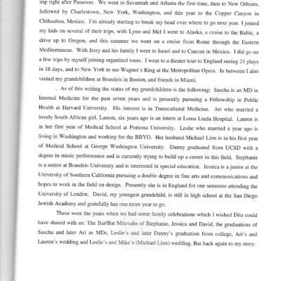 I attach a recent photo we took with the family last Friday, July 9, 2010, in Israel. From left to right: Heinz Mosse, Ofer Friedberg, Heinz Mosse's son-in-lawLila Mosse (sitting in the back), Heinz Mosse's wife; Michael Alexander, my brother; Sachar Alexander, my brother's younger son; Vivian Alexander, my brother's wife; Jonathan Alexander, my brother's older son; myself. Missing is Margalit Friedberg, Heinz and Lilas' daughter, who took the photo.
