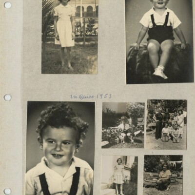 Page from John and Magda (Moschi) Koppel (nee Partos) album (with Koppel and Grunewald family members) -- 1958, Guayaquil