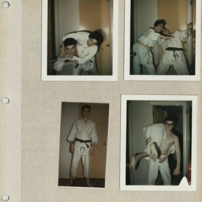 Photo at Left (left to right): Niko Sifnaghel, Fred Grunewald, Peter Albers, Ralph Yanowitzer; boy in mask is probably Miguel Feldman; Photo at right: same group.