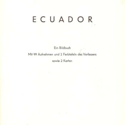 In 1952, Bruno Moritz published this book in Ecuador with great success: Arturo Eichler's book, "Nieve y Selva en Ecuador." ["Snow and Rain in Ecuador"] The book, in album format, was printed in France, has 132 text pages and includes 191 black and white photos, as well as a map of Ecuador. The cover was designed by the noted Ecuadorian artist, Osvaldo Guayasamin
